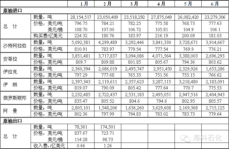 中国出口原油和成品油都很少,而且出口价格比进口价格高。