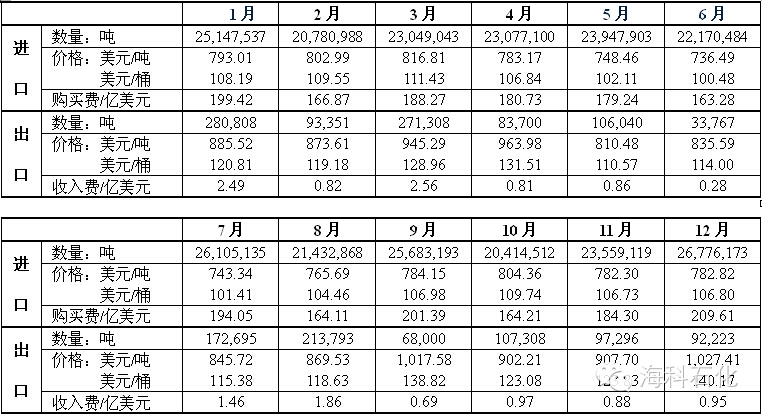 本文只涉及中国原油进出口数据和价格,不包括成品油进出口数据和价格。由于全球2014年原油生产、消费和贸易数据尚未发表,因此本文无法涉及。