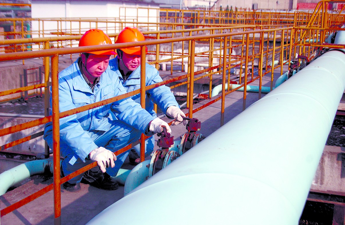 湖北化肥公司通过改进进水COD在线仪取样系统、采用闷曝工艺、积极进行曝气及汽提试验等技术手段,促进节能减排。图为员工正在根据进水浓度精细调节污水排入量。